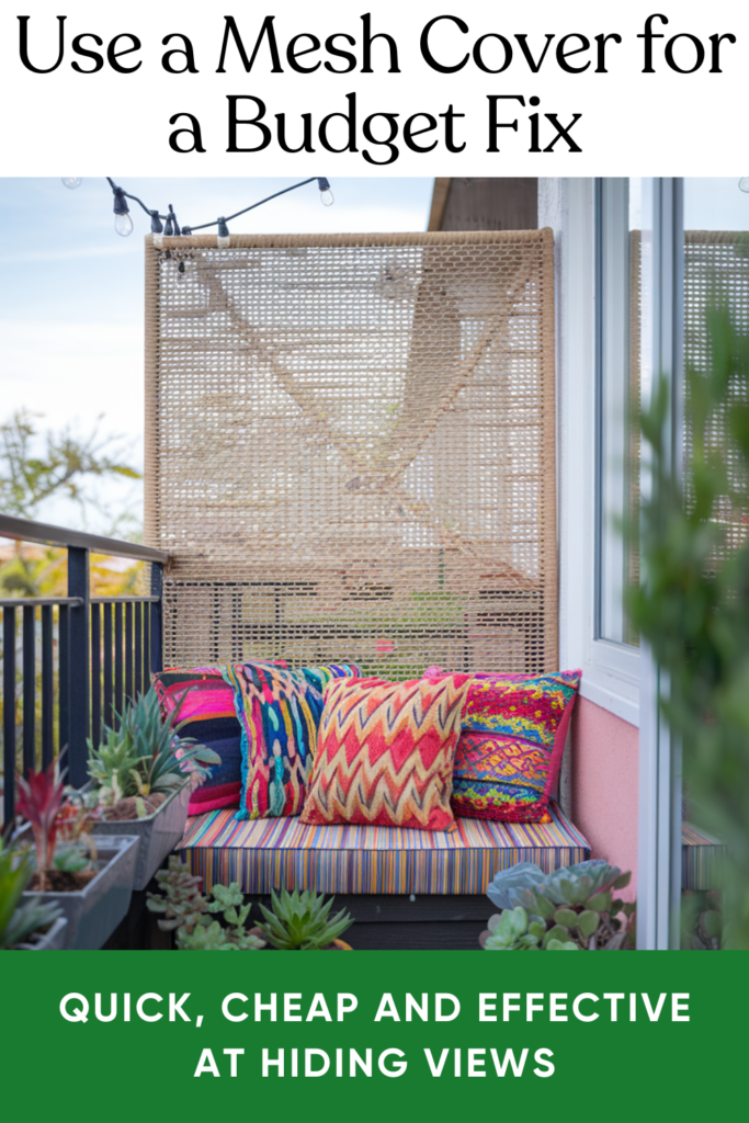 If you’re after a quick, affordable fix, mesh privacy covers are the way to go. I’ve used one myself and they’re surprisingly effective. Just zip-tie them to your railing, and you’ve got an instant privacy shield. Choose a neutral tone to keep things subtle.