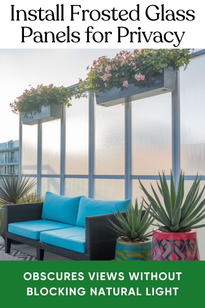 If you’re after a sleek, no-fuss option, frosted glass panels are hard to beat. They give you privacy without sacrificing light, and they’re ideal for modern-style balconies. It’s a bit more of an investment, but it’s clean, durable, and looks really polished.