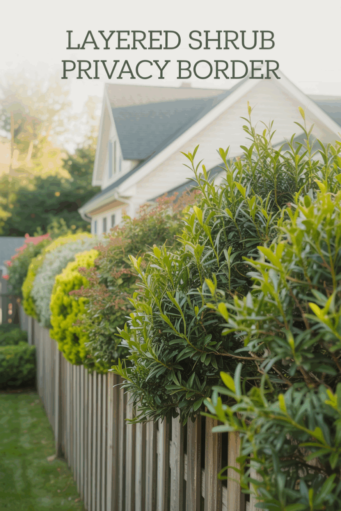 Plant a mix of low, medium, and tall shrubs in staggered rows to create a soft, natural privacy screen that builds height and depth without feeling like a wall. Great along fences or near patios.