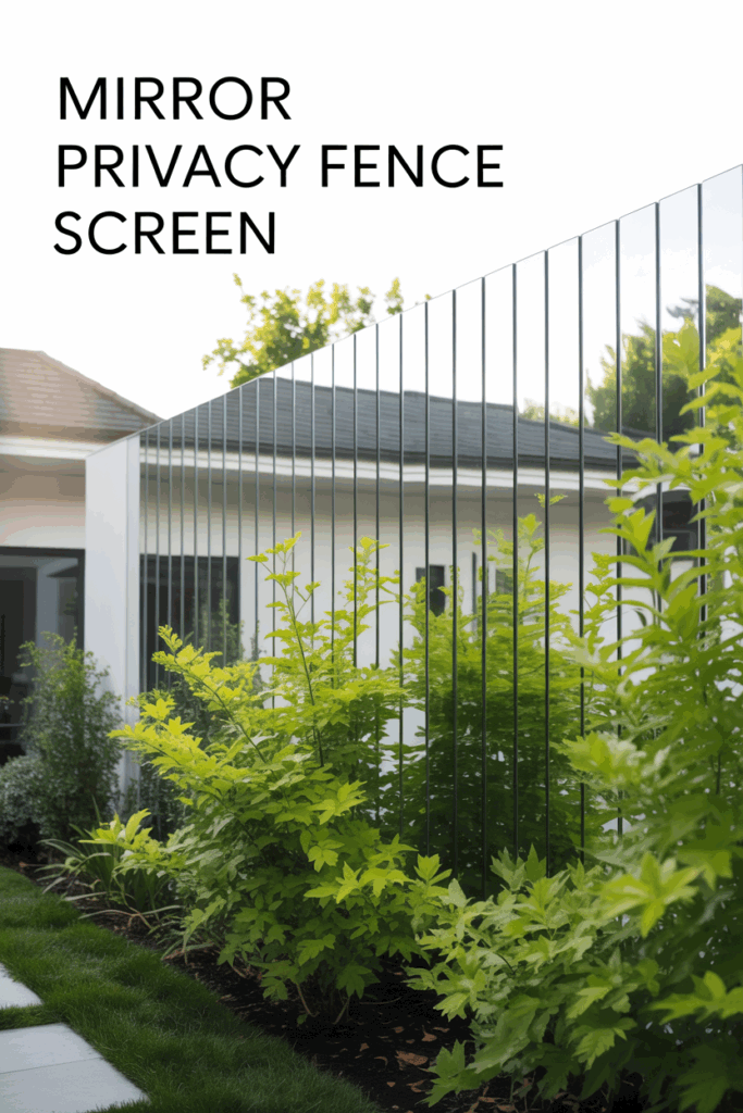 Attach outdoor-safe mirror panels to a wood frame or fence section. It reflects greenery, adds visual space, and helps distract from unwanted views without building something tall or bulky.
