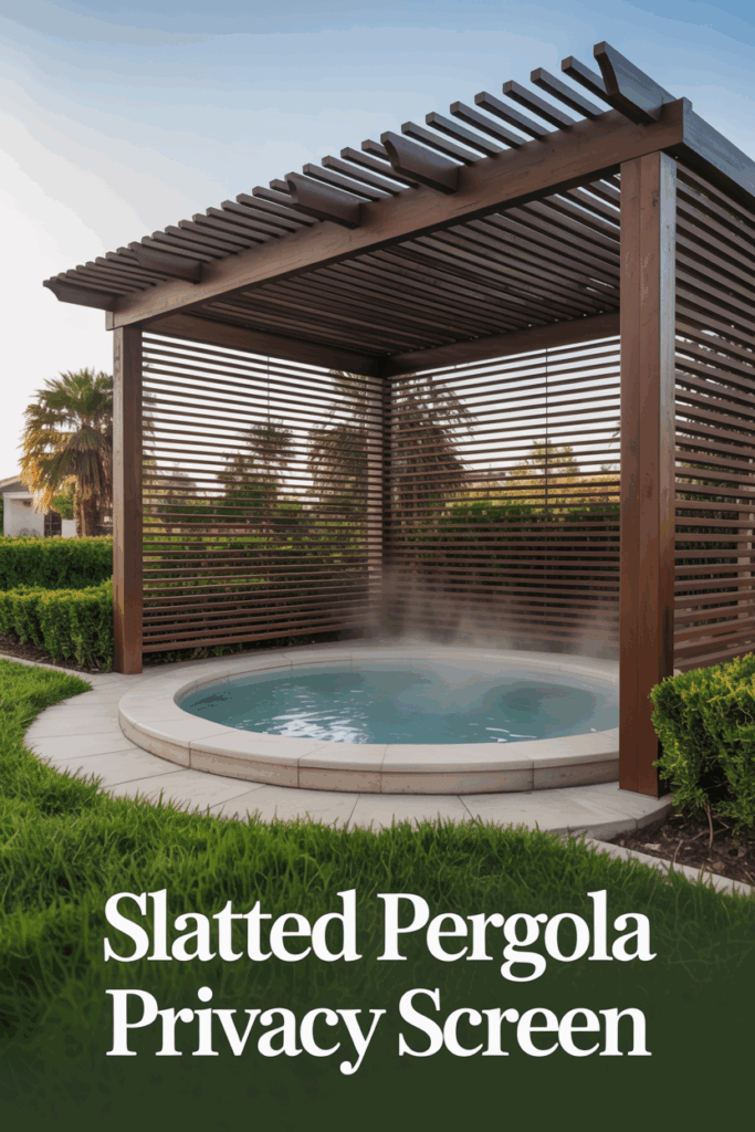 Build a screen with evenly spaced wooden slats arranged vertically or horizontally. Adjust the spacing to balance privacy and light.