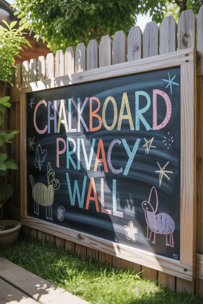 Build a framed chalkboard wall for kids or adults to draw on. It doubles as a privacy screen and a creative feature near patios or play zones.