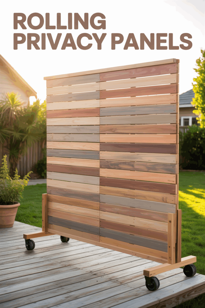 Build lightweight wooden or fabric screen panels and mount them on caster wheels. Easily reposition them to block the sun or a neighbor’s window—great for renters or small decks.