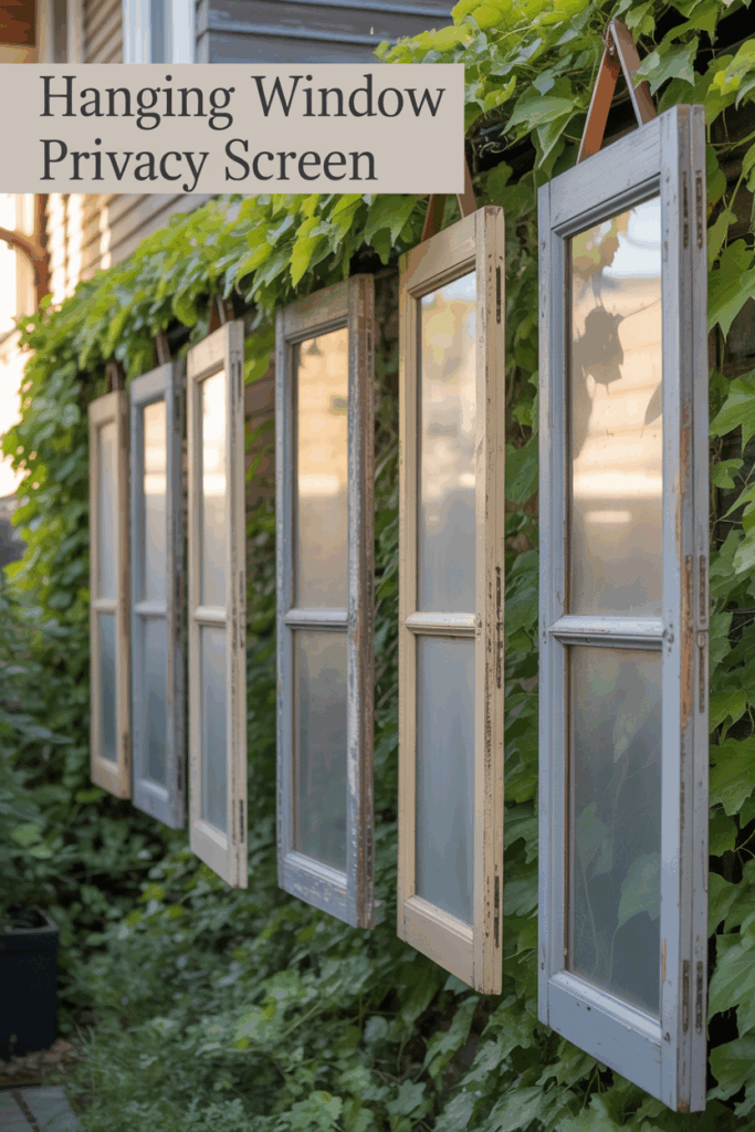 Attach old window frames with frosted or decorative glass for a unique, vintage-style screen. Arrange multiple frames together for a patchwork effect.