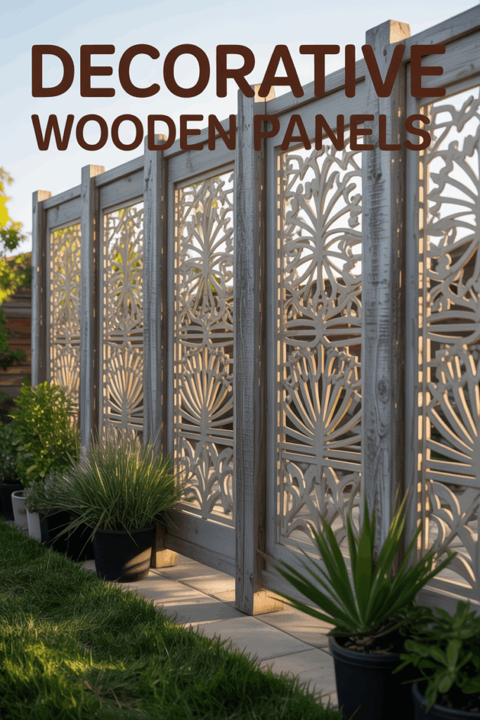 Design or purchase wood panels with cut-out patterns (like geometric shapes or florals) and mount them as fence inserts. Let light through while blocking views in style.