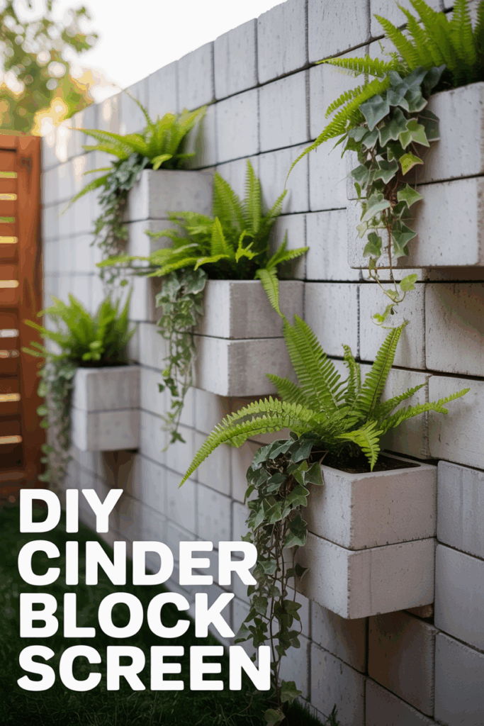 Stack cinder blocks to form a wall, leaving open cells facing outward. Fill them with trailing succulents or herbs for a quirky vertical privacy garden.