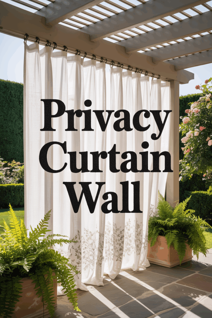 Hang weatherproof curtains from a pergola or tension rods mounted between posts. Choose light, airy fabrics for a touch of elegance and privacy.