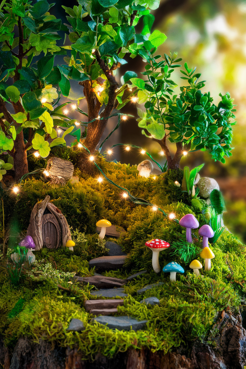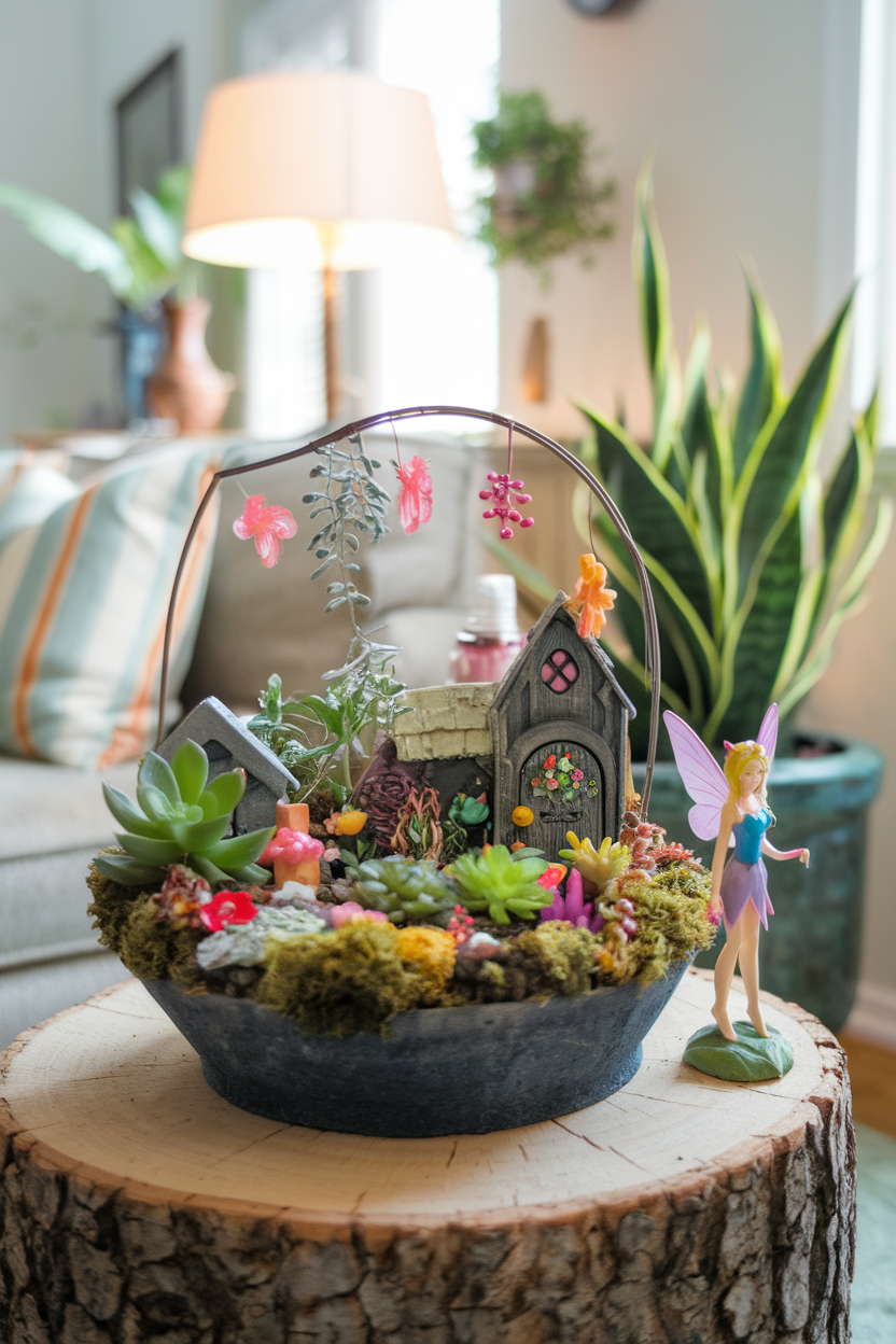 Create an indoor fairy garden using small containers or planters. This option is ideal for those without outdoor space and makes a charming decorative piece.
