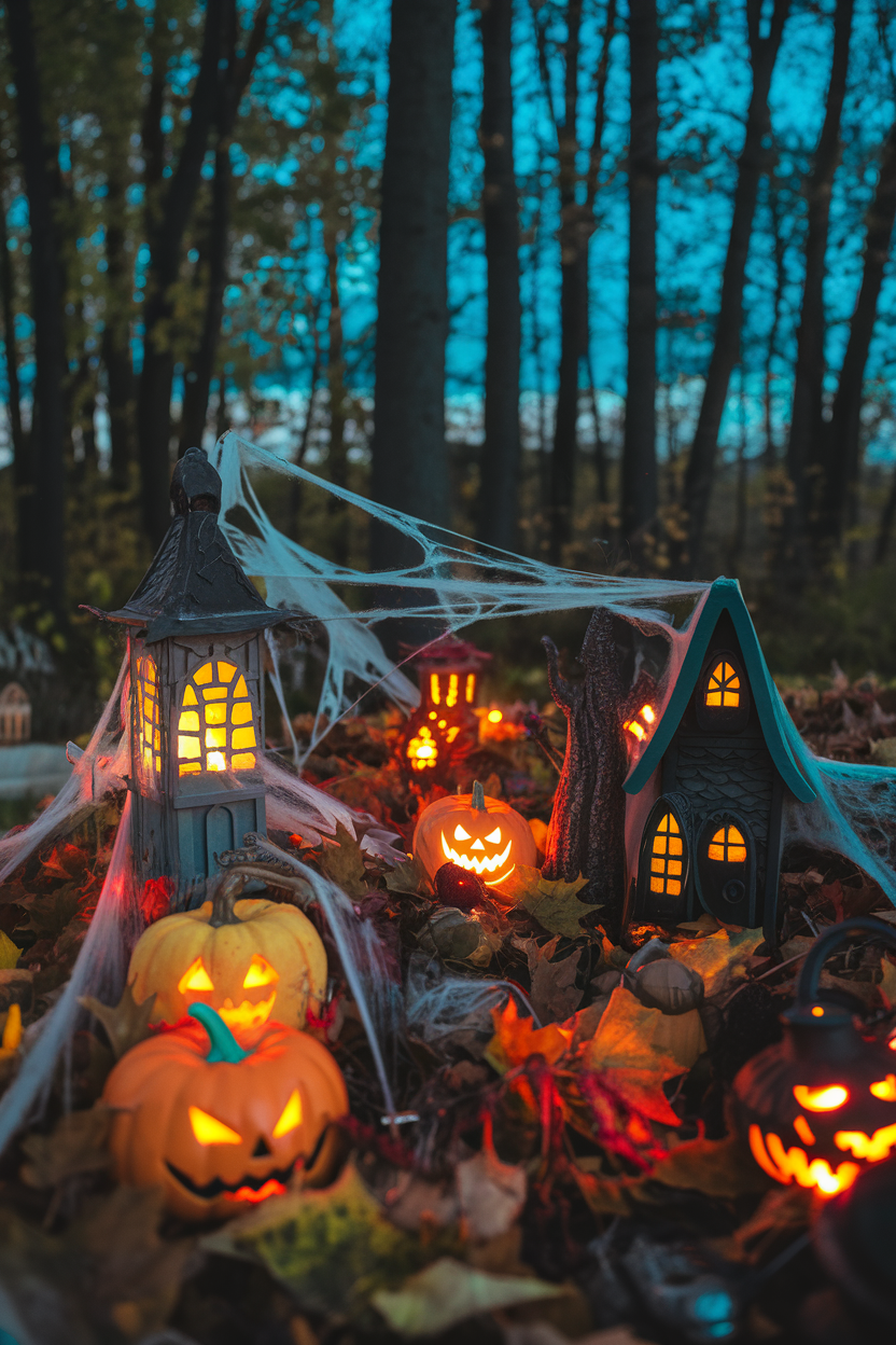 Design a spooky fairy garden with miniature pumpkins, spider webs, and eerie fairy houses. This theme is perfect for the Halloween season and adds a fun twist to traditional fairy garden designs.