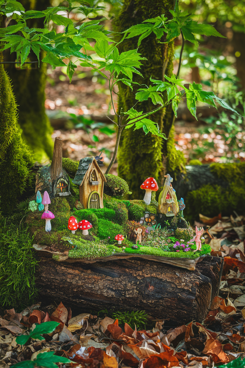 Turn a fallen log into a fairy garden by adding moss, tiny figures, and natural decorations. It’s a wonderful way to incorporate organic elements into your design.