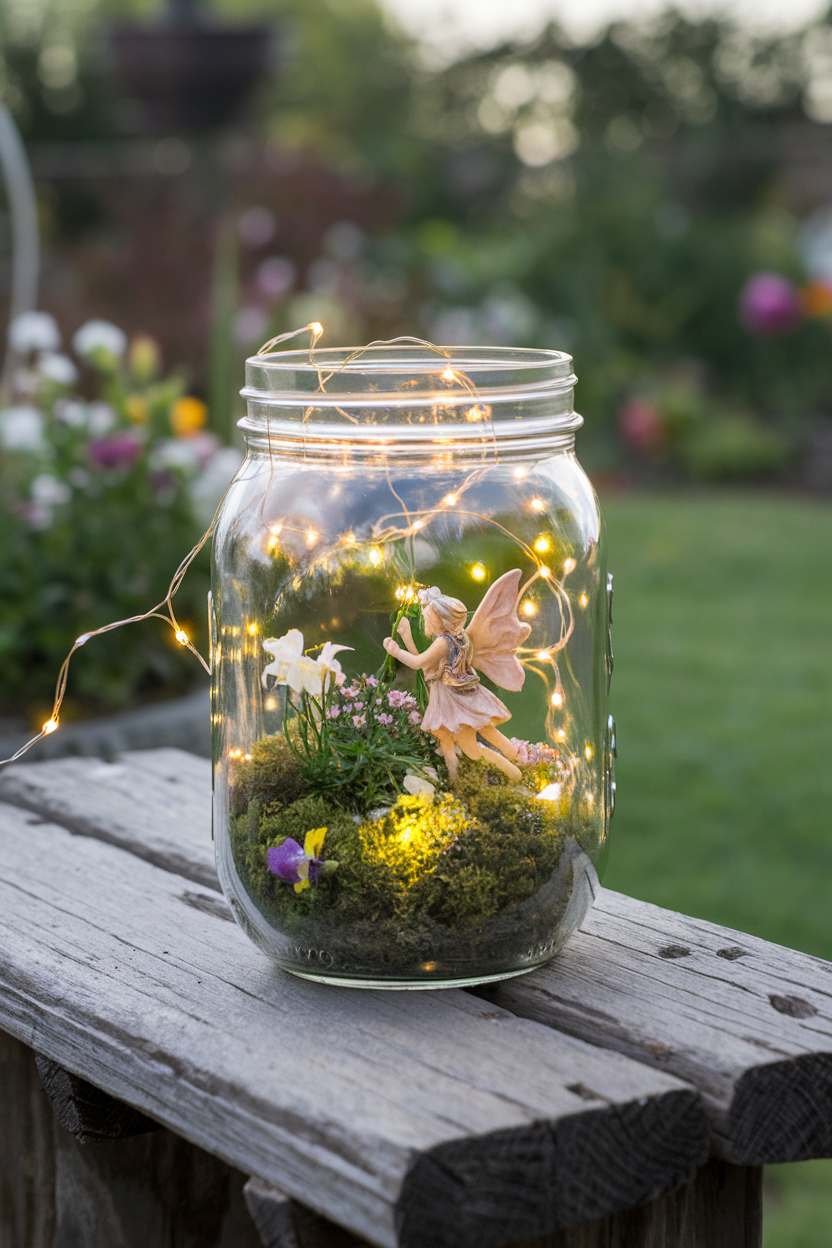 Craft a tiny, portable fairy garden using a mason jar. Fill it with moss, a few small plants, and fairy lights for an enchanting glow. This idea makes a beautiful gift or decorative piece for small spaces.