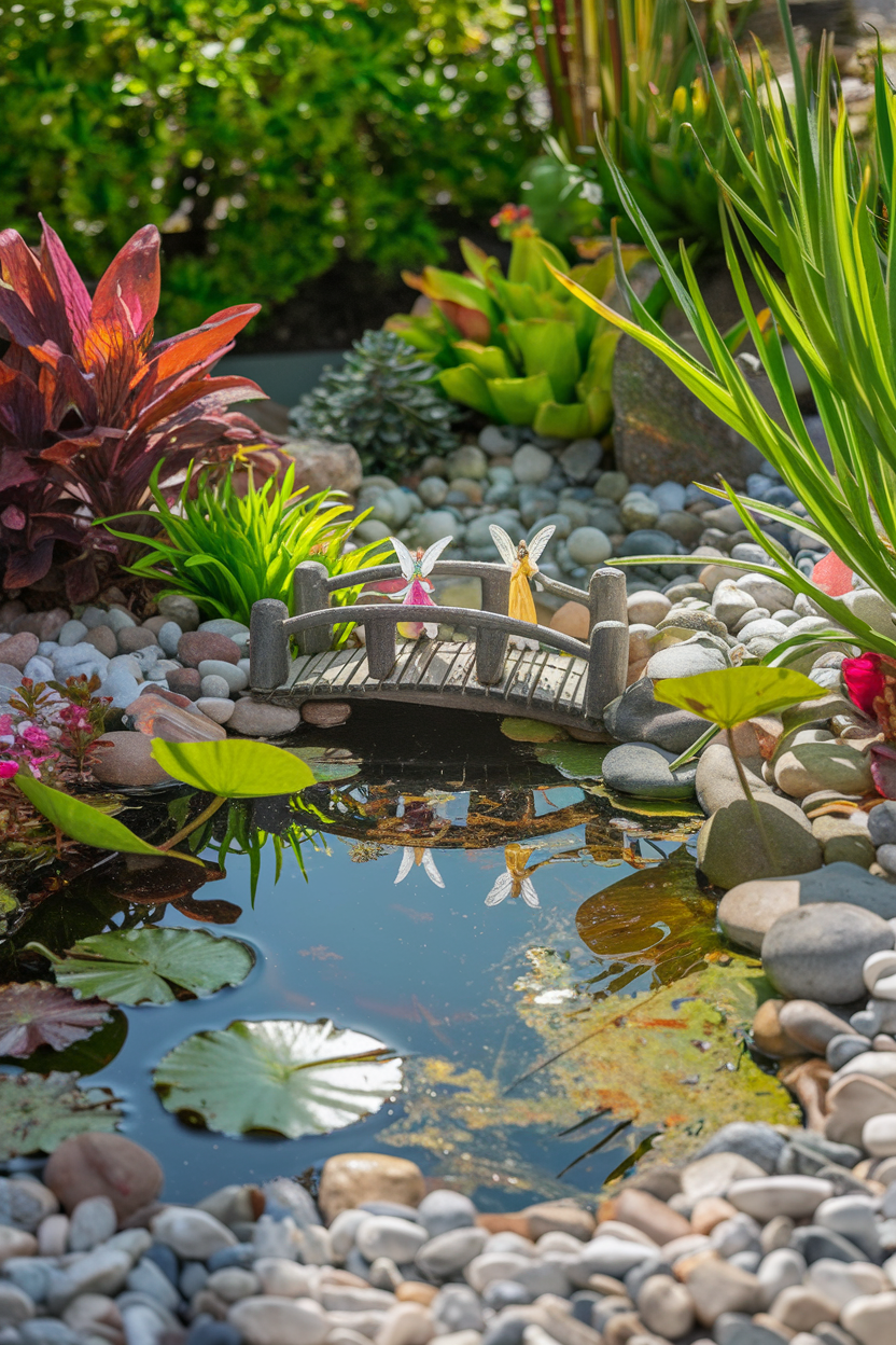 Include a small pond in your fairy garden for added charm. Use a shallow dish or bowl filled with water and surround it with pebbles and plants. Add a tiny bridge or boat for extra detail.