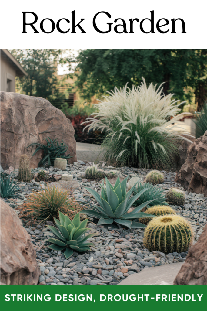 Design a rock garden with drought-tolerant favorites like cacti and succulents. It’s a striking, low-effort option that adds character.