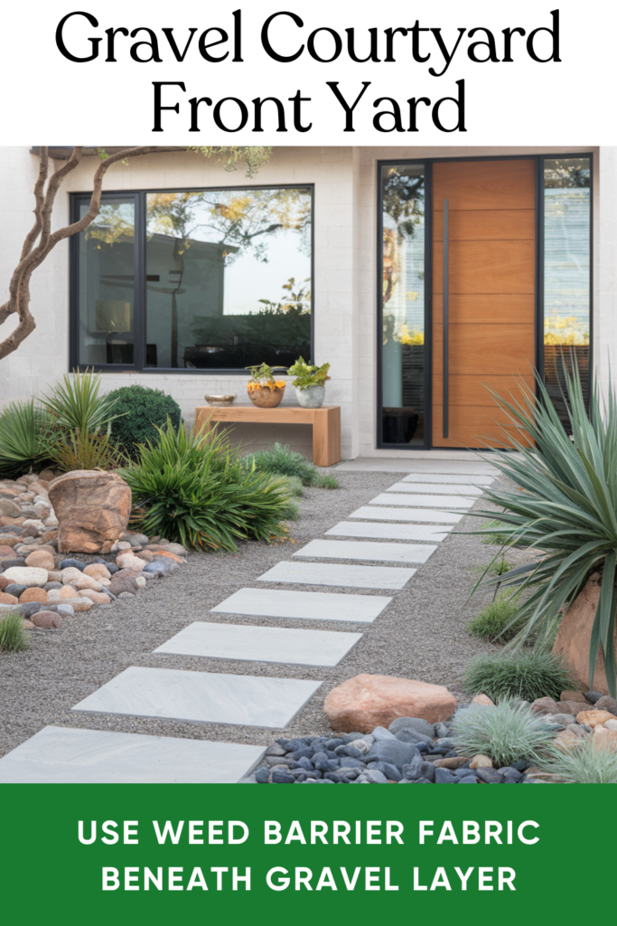 Swap out your lawn for a stylish gravel courtyard with stepping stones and drought-tolerant plants. Use fine gravel for walkways and larger rocks as accents. A simple bench or small water feature adds a touch of elegance and makes the space feel complete.
