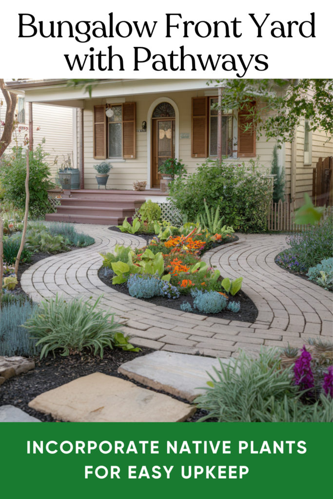 A classic bungalow or craftsman home pairs beautifully with winding gravel paths, native plants, and a few decorative trees. It’s a timeless combo that never goes out of style.