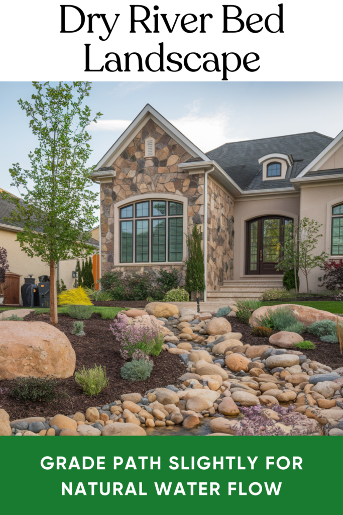 A dry river bed made of smooth river rocks and chunky boulders adds texture and movement to your yard. It’s fantastic for sloped spaces and improves drainage too.