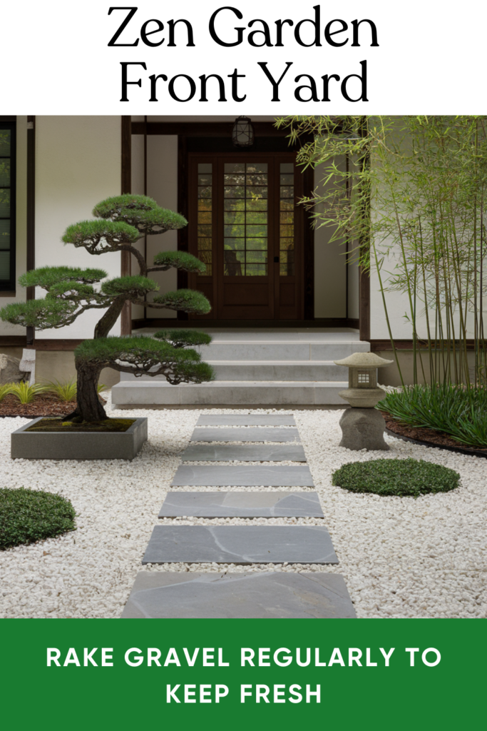 Channel a bit of Japan with a Zen garden. Think raked gravel, minimalist plants like bamboo, and sculptural rocks. It’s a peaceful, low-maintenance option that brings instant calm to your front yard.
